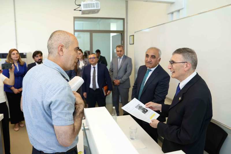 Nobel mükafatçısı Aziz Sancar UNEC rektoru professor Ədalət Muradovla birlikdə universitetdə yaradılmış Aziz Sancar adına Qida Təhlükəsizliyi Laboratoriyasında tədqiqatçılarla görüşüb.