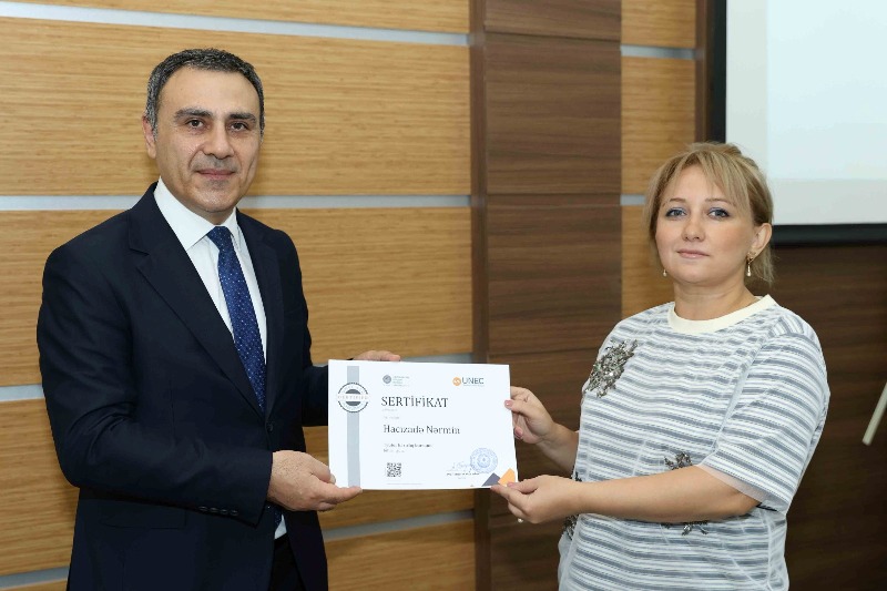 Tədbirdə UNEC-in Tədris işləri üzrə prorektoru, dosent Gəray Musayev, UNEC Rəqəmsal Təhsil Mərkəzinin direktoru Kəminə Cəbrayılova və kursun məzunları iştirak ediblər.