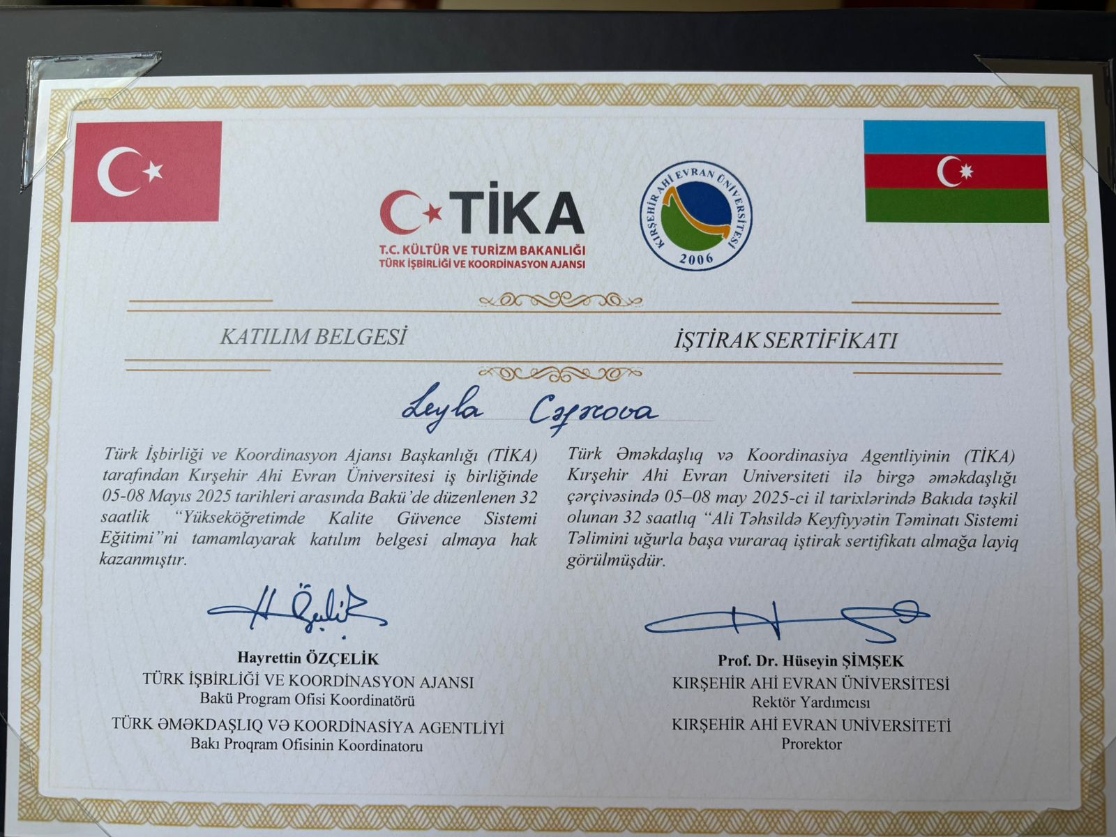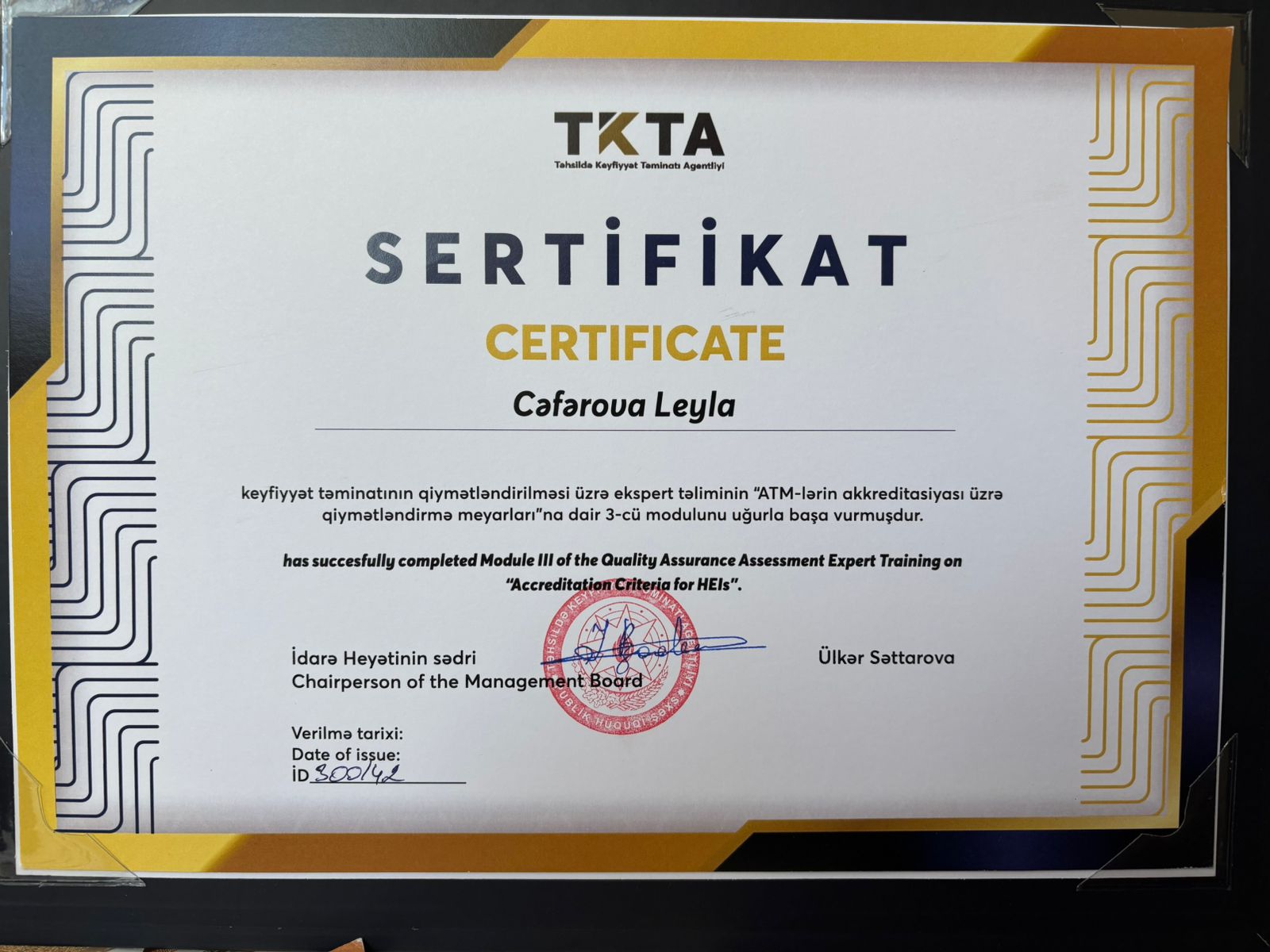 18 iyun 2025 - əmək funksiyalarını məsuliyyətlə yerin yetirdiyinə və UNEC-in 95 illiyi münasibətilə Fəxri Fərmanla təltif edilib.