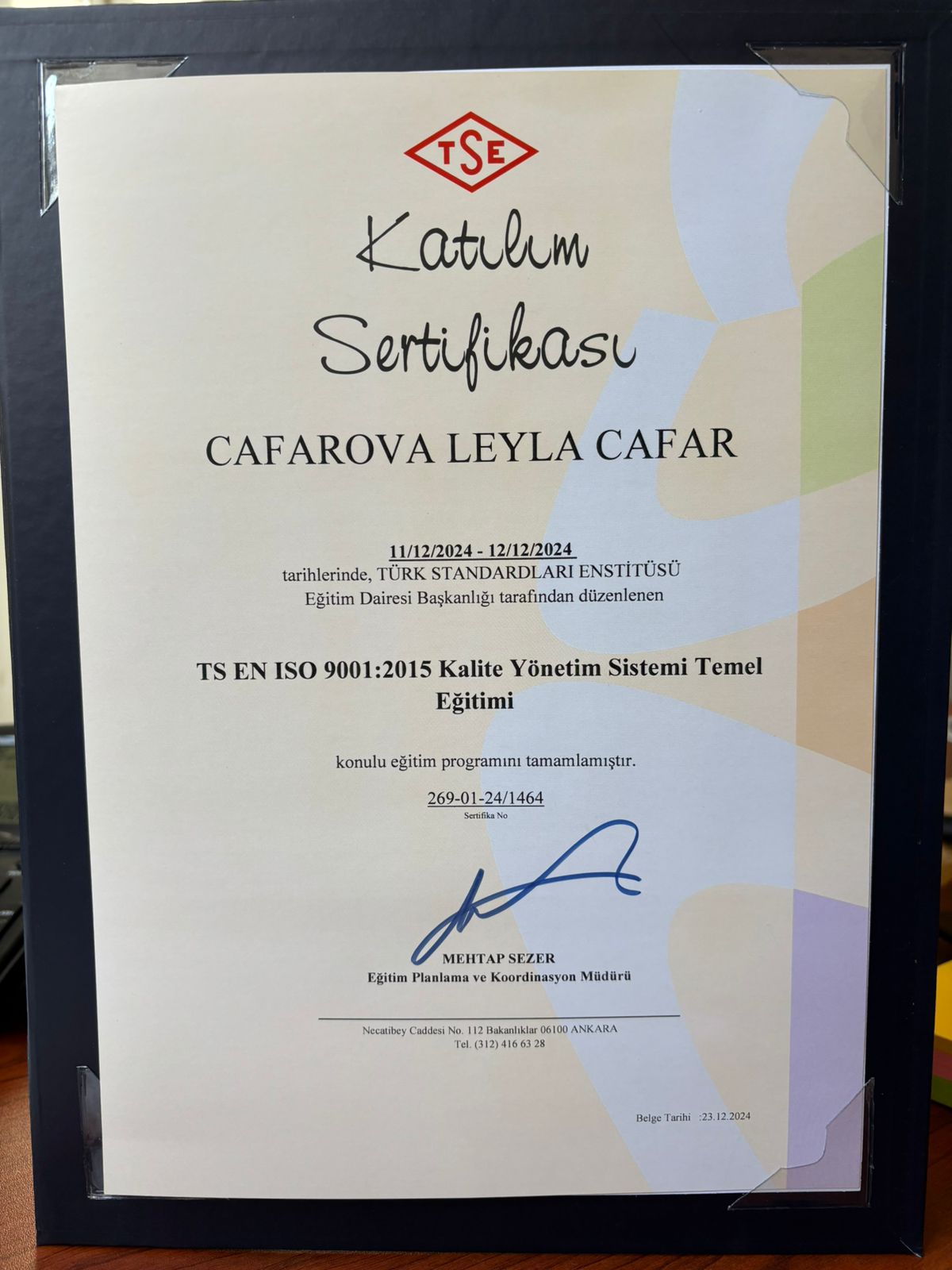Keyfiyyət təminatı şöbəsinin baş mütəxəssisi