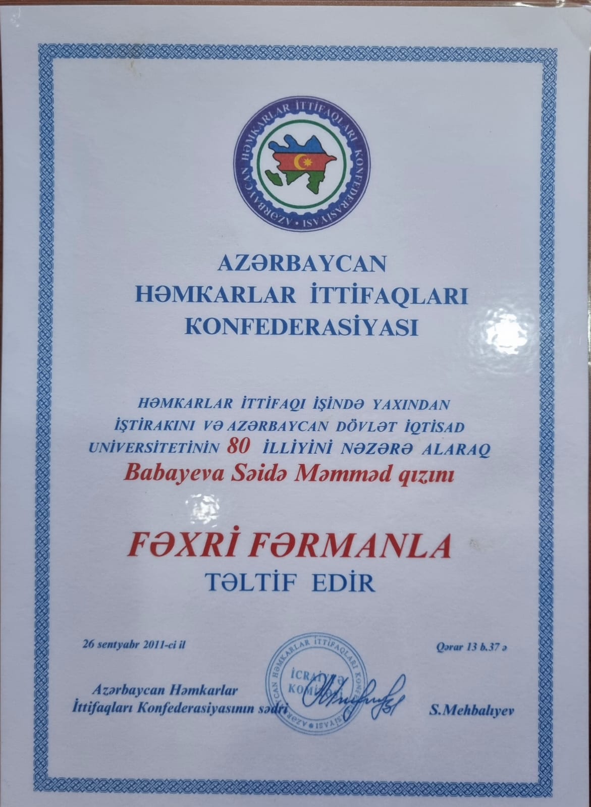 Babayeva Səidə Məmməd qızı 29.12.1954-cü ildə Bakı şəhərində anadan olub.