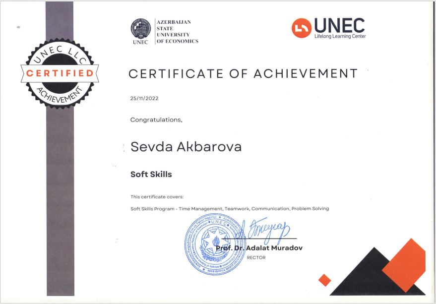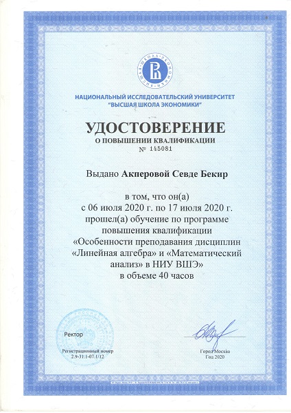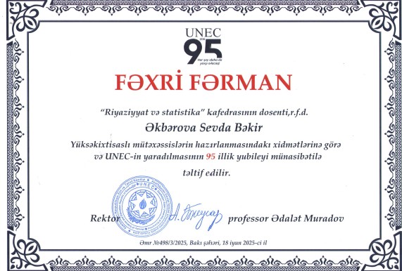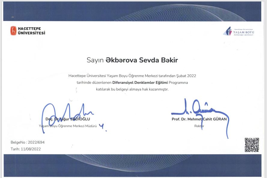 Azərbaycan Respublikasının Prezidenti yanında Ali Attestasiya Komissiyasının 27.09.2017-ci il tarixli qərarı ilə dosent elmi adı verilmişdir.
