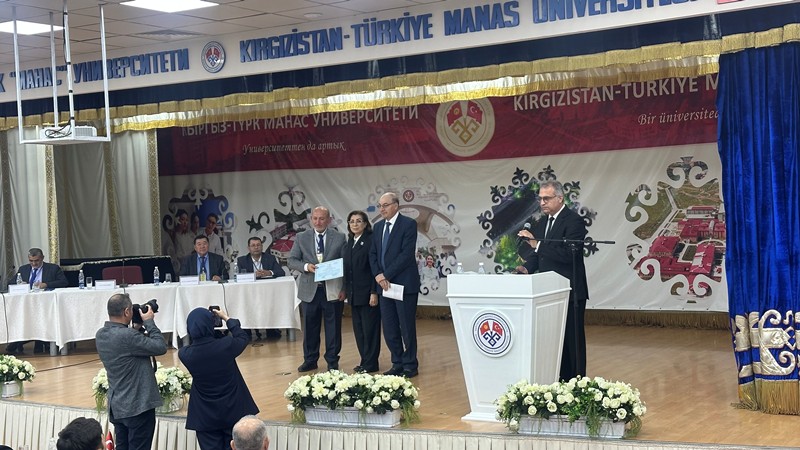 The meeting was held with the support and participation of the Ambassador Extraordinary and Plenipotentiary of the Republic of Azerbaijan to Kyrgyzstan, Latif Gandilov. During the meeting with the Rector of Manas University, Prof. Dr. Alparslan Jeylan, the parties discussed the expansion of bilateral cooperation, implementation of joint projects, and opportunities for academic exchange.