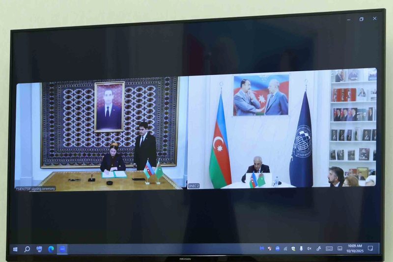 На церемонии подписания, состоявшейся в онлайн-формате, документы подписали ректор UNEC, профессор Адалат Мурадов, ректор Туркменского государственного института экономики и управления Акнабат Атабаева и ректор Туркменского государственного института финансов Байрам Танрыбердыев.