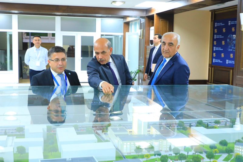 В рамках визита состоялось посещение недавно созданного Международного университета тюркских государств. Ректор университета ТГТУ, профессор Баходир Тураев, проинформировал о работах по созданию и планах на будущее.